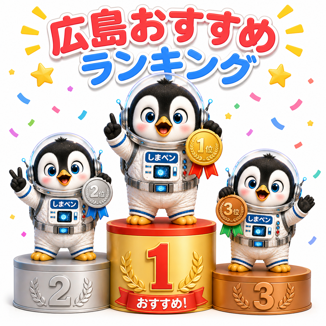しまペンが表彰台に立っているランキングイラスト